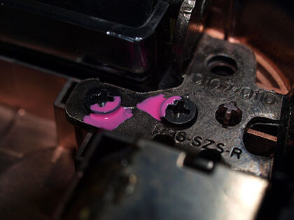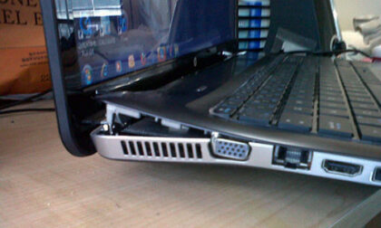 Selle lakkimisega hoita te ära kruvide lahtitulemise mis on tingitud olmevibratsioonist jms. Kuigi tehas paneb keermeliimi kõikidele kruvidele, siis kipuvad kruvid ikka lahti tulema ajapikku. See aga väänab korpuse kinnitusi sedavõrd, et ühel ilusal hetkel kui te arvuti kaant kinni hakkate panema, läheb see hoopis pooleks nagu antud pildil on juhtunud. ↓