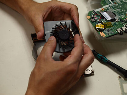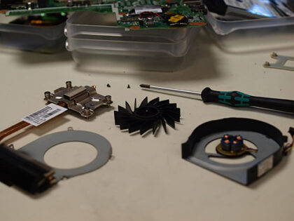 Kui ventilaator jahuti küljest lahti, puhastame ja hooldame ta ära. Esiteks 80% sülearvuti ventilaatoritest on hooldatavad, ehk käivad reaalselt lahti (mõtleme ventilaatori labadega osa mootori küljest lahti) ning saab hooldada, ülejäänud 20% ventilaatoritest tuleb lihtsalt välja vahetada kui nad ragisevad või teevad häält ka pärast tolmust puhastust.