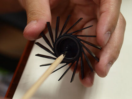Pärast pesu ja hoolikat kuivatamist tuleks kindlasti ventilaatori rootori peale määret panna. Selleks sobib ideaalselt grafiitmääre (saab seda nt tööriistamarketist). Illustreeriv pilt ventilaatori määrimisest grafiitmäärdega. ↑